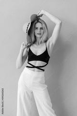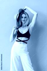 Beautiful young stylish blonde model posing in studio