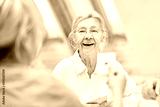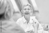 Seniorin im betreuten Wohnen spielt Karten