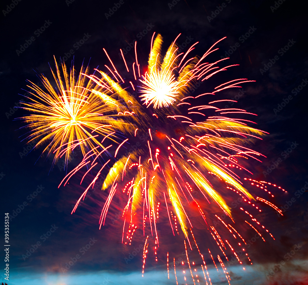 Brightly colorful fireworks and salute of various colors