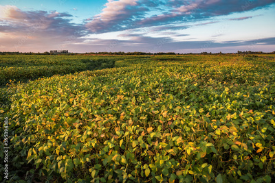soybean field on sunset