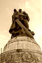 The sculpture of the liberating soviet warrior in the Soviet War Memorial (Sowjetisches Ehrenmal) in Treptower Park, Berlin