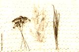 Dried flowers bouquet on white knitted woolen scarf background. Dry reeds, river cane, spikelets and meadow flowers. Winter and autumn in village or countryside. Beautiful flat lay, neutral colors
