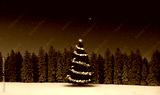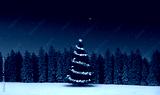 Beleuchteter Christbaum in einem Winterwald bei Nacht