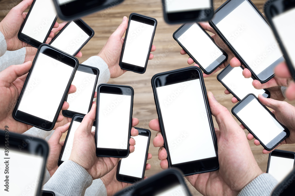 Many smartphones in many hands