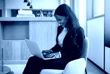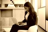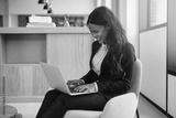 Laughing African American businesswoman at work using a laptop