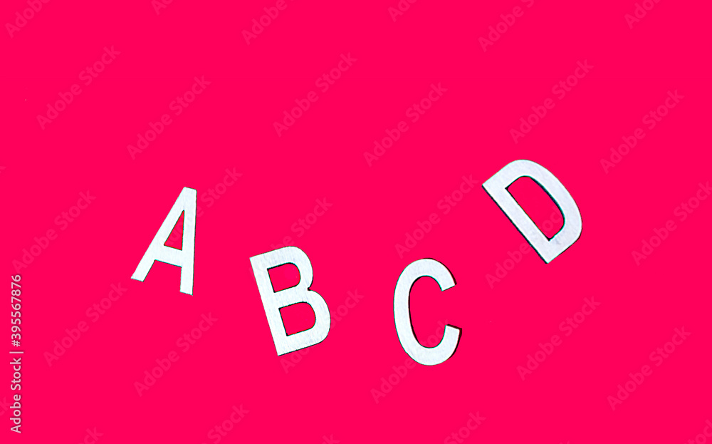 Wooden letters of the alphabet ABCD on a red background. The beginning of the alphabet