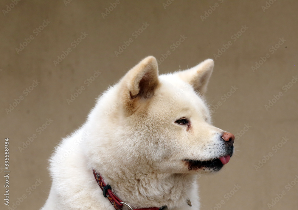 Outdoor close up portrait of an japanese akita inu dog