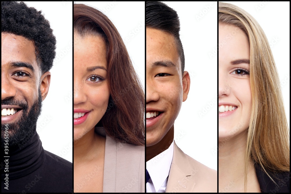Beautiful happy people in front of a background