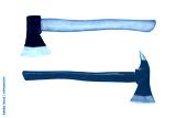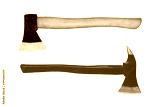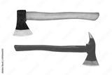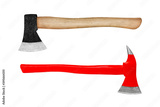 Ax with wooden handle and Red fire axe isolated on white background with clipping path included.