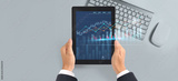 Business plan graph growth increase of chart positive indicators in his business,tablet in hand