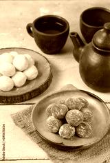 Moci merah putih. Red and White Mochi or moci cake. One of traditional snack from Indonesia. Made from glutinous rice flour with sugar and roasted peanut filling.