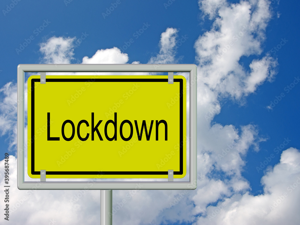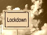 Ortsschild mit der Aufschrift Lockdown vor bewölktem Himmel
