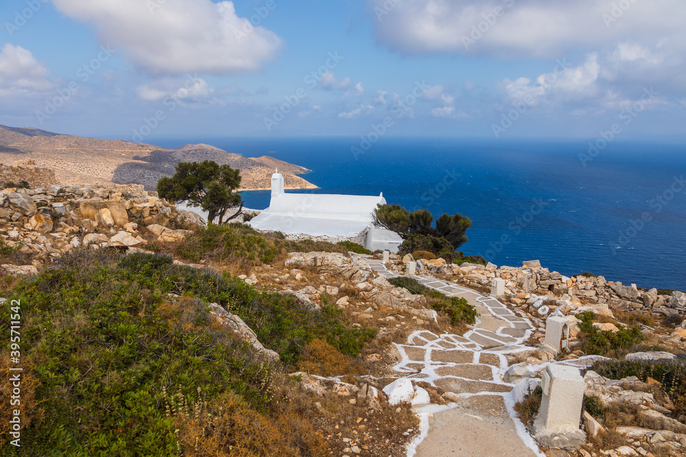 View of the small Church of Panagia Paleokastritsa , Ios Island, Greece.