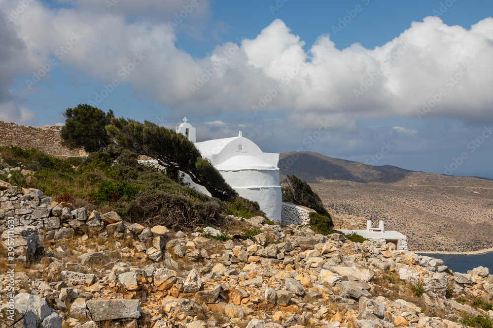View of the small Church of Panagia Paleokastritsa , Ios Island, Greece.