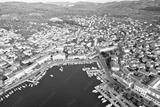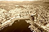 Korcula. Town of Vela Luka on Korcula island waterfront aerial view