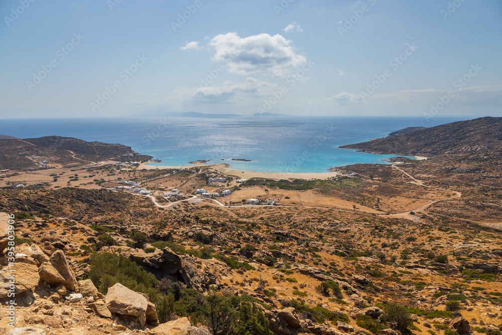 View to the popular Manganari beach, Ios Island, Greece.