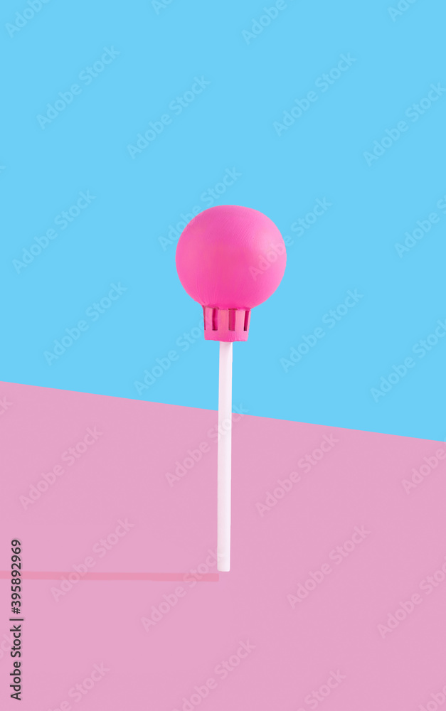 Creative concept with lollipop mad of Christmas tree ball. Christmas and holiday season concept