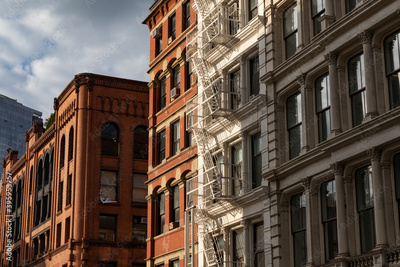 SoHo New York City Street with Beautiful Old Buildings with Fire Escapes