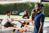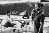 Latin young businessman walking and talking on cell phone outdoors in Mexico