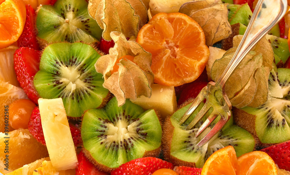 Fresh fruit-fruit salad strawberry, kiwi, nectarine.