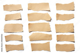 collection real brown paper torn or ripped pieces of paper in white background