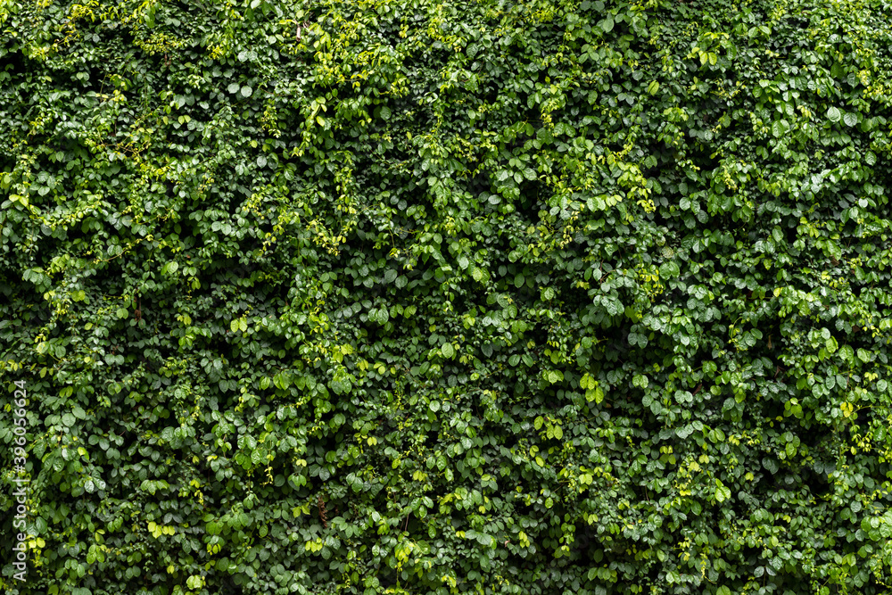 Green leaf wall texture background. Vine on the wall. Nature of green plants. Environmental freshness wallpaper concept.