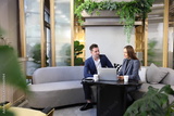 Caucasian business people is working on new strategic planning for next year using laptop while working in green building eco friendly modern working space surrounded by air purifying house plant