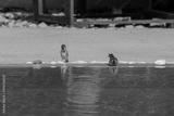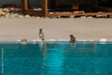 A sparrow on the edge of the pool, Ios Island, Greece.