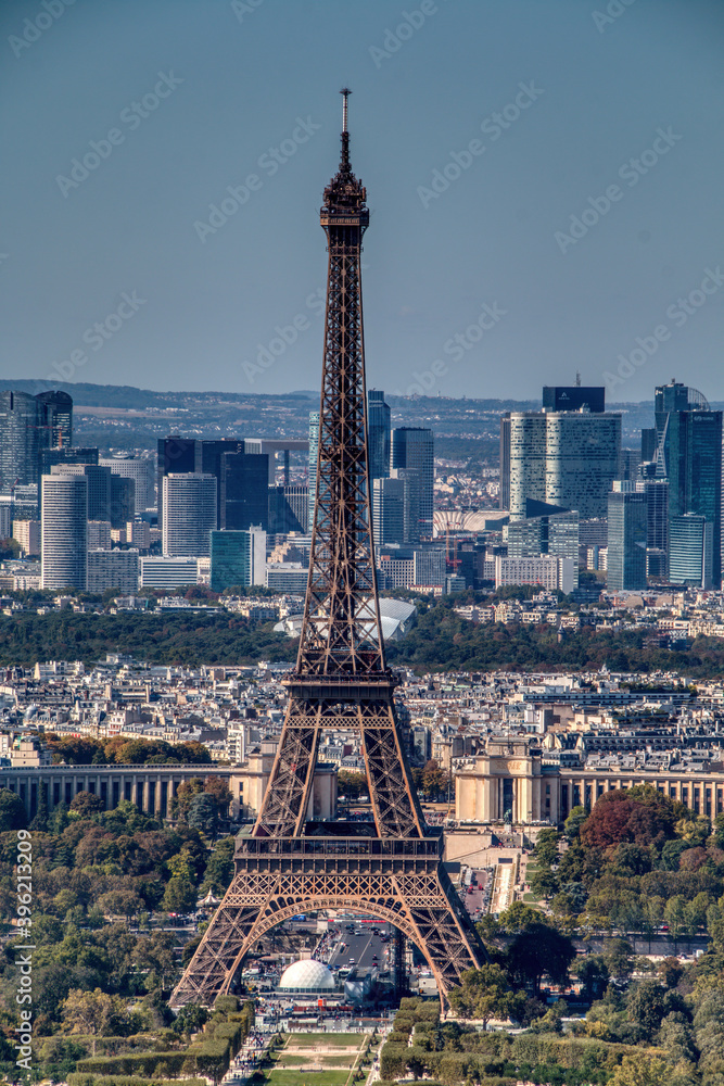 The Eiffel tower seen from the top of the Montparnasse tower in Paris, France