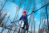 cute happy little girl play in winter playground
