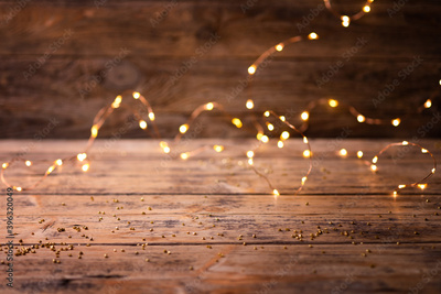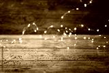 Rustikaler Holz Hintergrund mit Bokeh Lichtern - Weihnachten