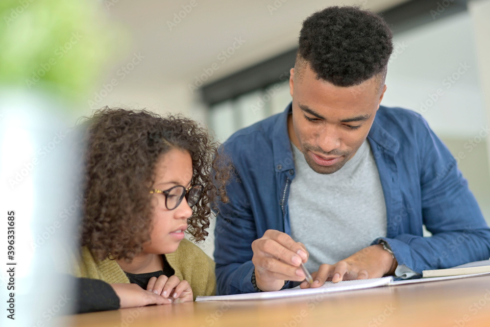 Daddy helping daughter with homework