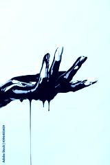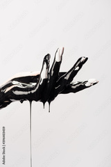 Cropped view of hand with dripping black paint isolated on white, stock image