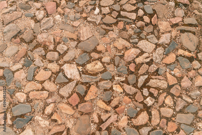 Ancient cobblestone street. Large stones on the old road. Stony path.