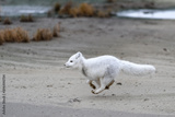 Arctic fox (Vulpes Lagopus) in wilde tundra. Arctic fox running.