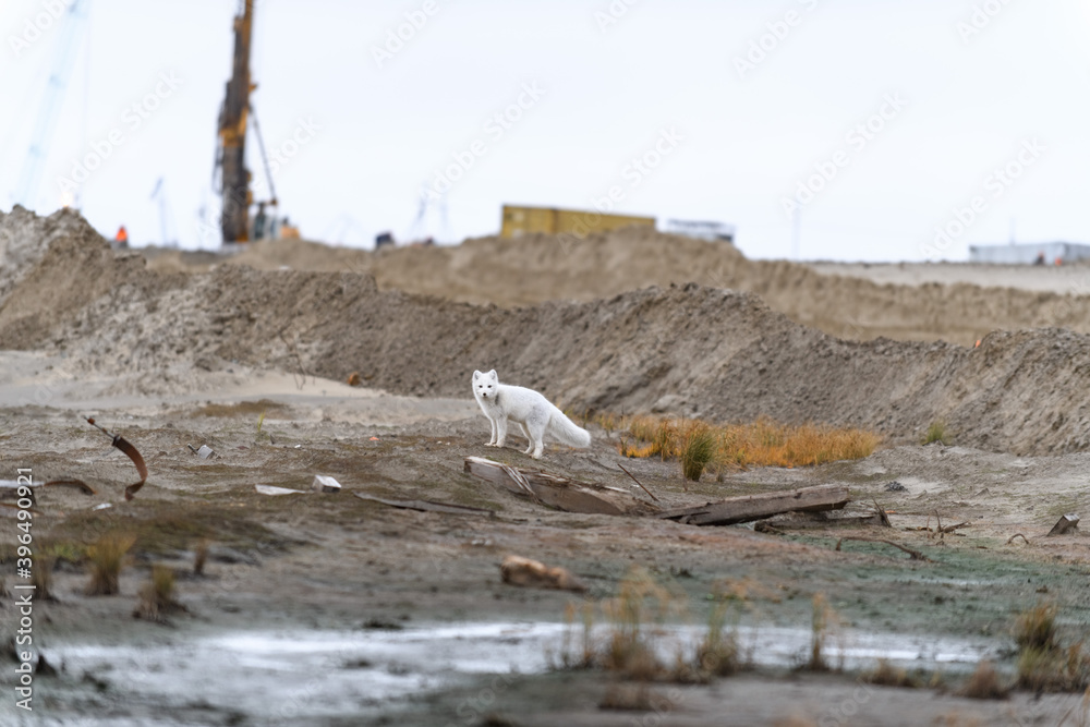Arctic fox (Vulpes Lagopus) in wilde tundra. Arctic fox on the beach.