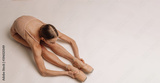 Beautiful young focused ballerina stretching her body