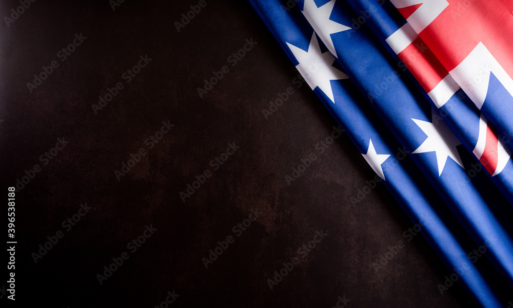 Australia day concept. Australian flag against dark stone background. 26 January.
