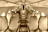 Empty rows of seats on an old plane