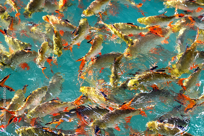 Abstract background, The image blurs the water surface, there are fish underneath.