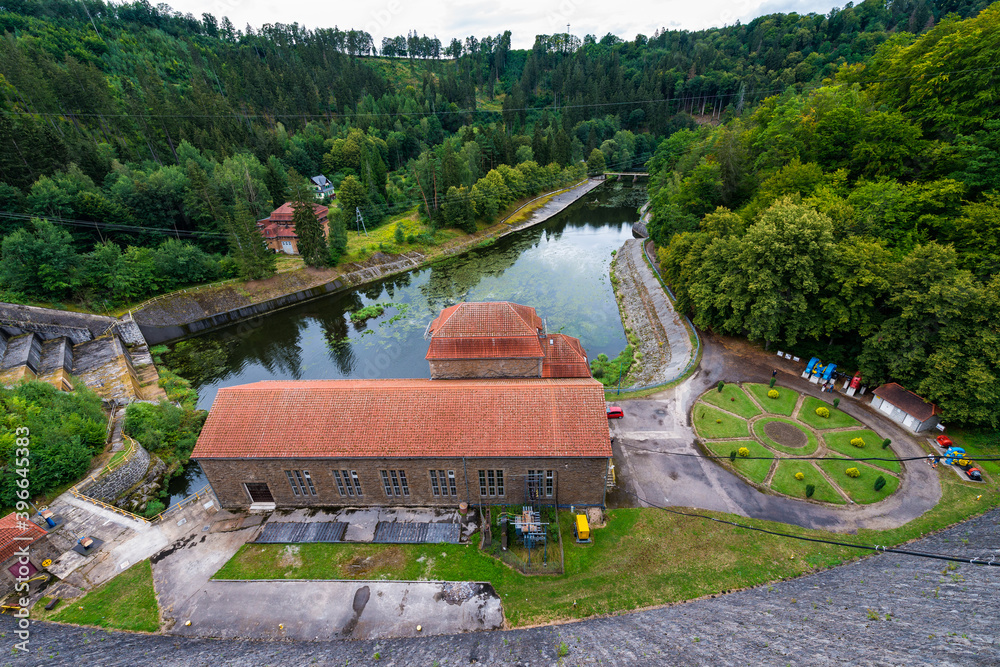 Dam on Bobr river and hydroelectric water power station in Pilchowice near Jelenia Gora in Poland
