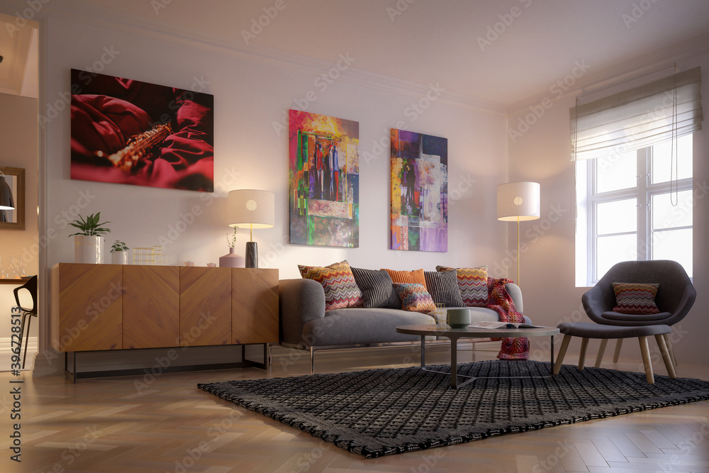 Furnishings and Art Panintings Inside an Apartment - 3D Visualization
