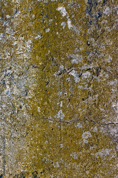 Concrete wall covered with moss