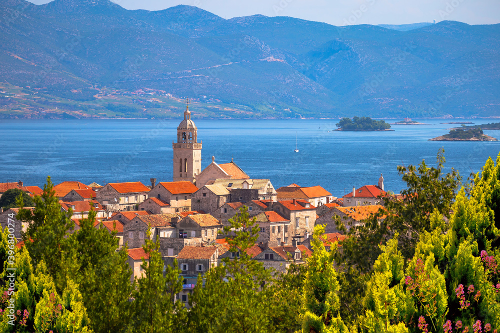 Historic town of Korcula panoramic view from the hill