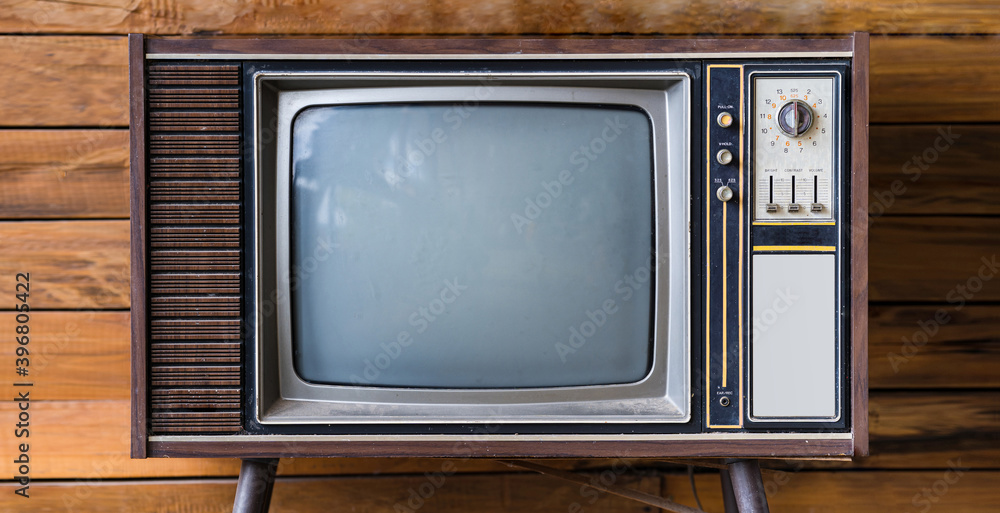 Old tv on wood table in room