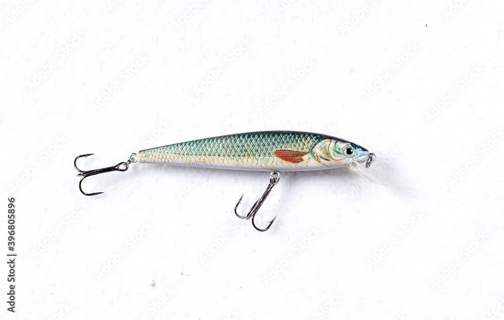 Close up product image of a fishing lure on white background