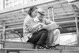 Elderly Asian couples,tourists sitting looking at map showing routes in capital of business districts and planning travel plan with concept of traveling around the world after retirement from work.