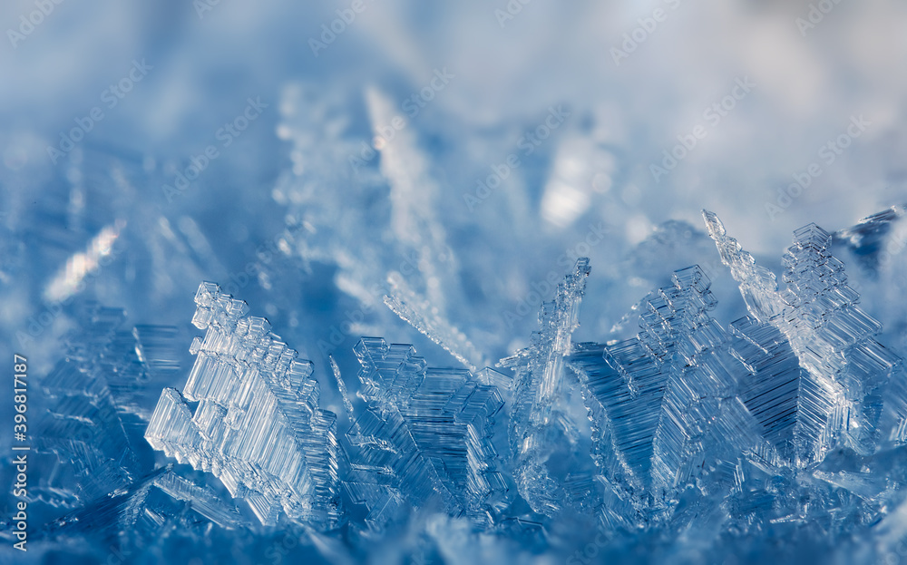 Winter background of ice crystals, icy background