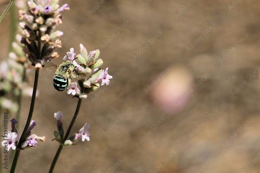 Blue Banded Bee (Amegilla cingulata) feeding on lavender nectar, South Australia