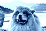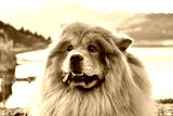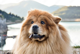 Beautiful dog chow-chow outside. Purebred dog chow chow on vacation on mountain lake Zaovine